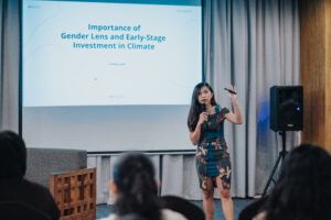 “Investors who used to be mainstream and profit-focus have now shifted towards impact investing using gender lens as one of their assessments – calling the current trend Gender Smart Investing (gender lens + financial return). Understanding gender is key in the climate space; real value, key growth, and innovation driver are three factors that could help women’s climate investment landscape pass the valley of death in startup growth.”